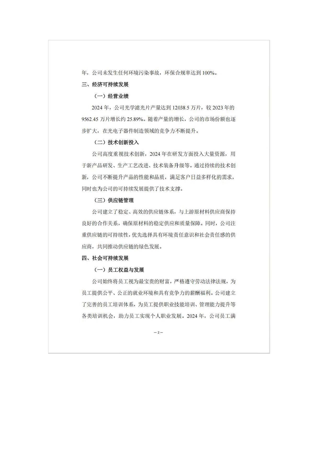 上海高能煜鍍科技有限公司專注于光學(xué)濾光片的研發(fā)、生產(chǎn)與銷售,屬于C3976光電子器件制造業(yè)。未來,上海高能煜鍍科技有限公司將繼續(xù)秉持可持續(xù)發(fā)展理念,在環(huán)境、經(jīng)濟和社會領(lǐng)域持續(xù)發(fā)力。在環(huán)境方面,進一步加大節(jié)能節(jié)水技術(shù)的應(yīng)用,探索可再生能源的利用,不斷降低環(huán)境footprint;在經(jīng)濟方面,持續(xù)提升技術(shù)創(chuàng)新能力,優(yōu)化產(chǎn)品結(jié)構(gòu),拓展市場領(lǐng)域,實現(xiàn)企業(yè)的穩(wěn)健增長;在社會方面,加強與員工、社區(qū)、供應(yīng)商等利益相關(guān)方的溝通與合作,共同推動行業(yè)和社會的可持續(xù)發(fā)展,努力成為光電子器件制造領(lǐng)域可持續(xù)發(fā)展的標(biāo)桿企業(yè)。
