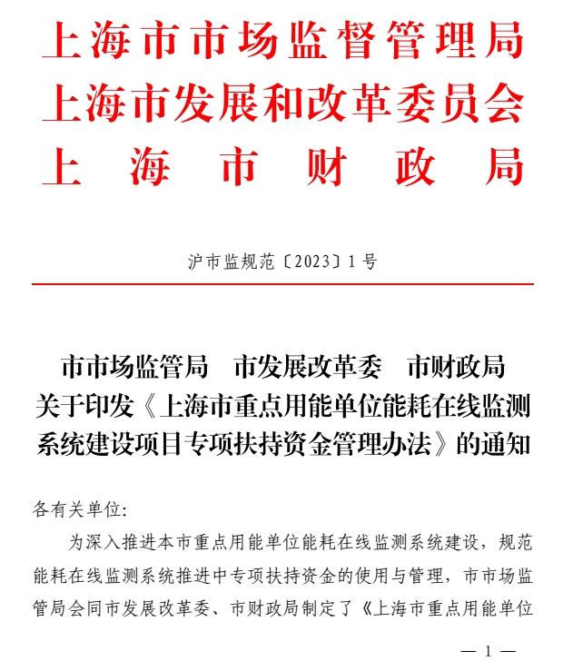 根據(jù)《上海市重點用能單位能耗在線監(jiān)測系統(tǒng)建設項目專項扶持資金管理辦法》(滬市監(jiān)規(guī)范〔2023〕1號)規(guī)定: